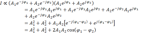 This has important consequence because if the total field at a detector is given by the superposition of two waves of phase φ1 and φ2 and respective intensities A1 and A2 we get an observed energy of