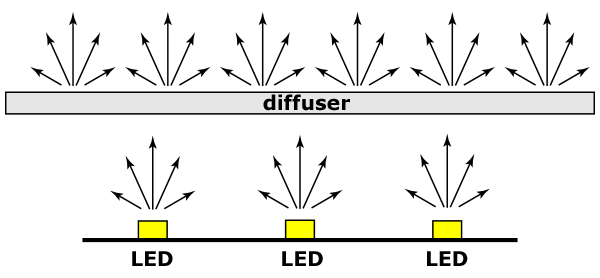 Our backlight will be composed of an array of LEDs with a diffuser plate as shown in Figure 1. Other backlight arrangements exist but the one of Figure 1 is fairly typical and is considered as a state-of-the-art starting point when you need relatively powerful illuminations.