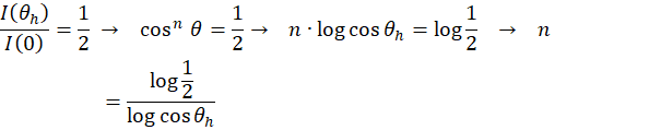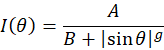where n can be fitted from experimental measurements or be computed from the angle where the intensity drops by half