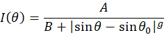where A, B and g are model parameters of the diffuser plate and β, β0 are the components of the unit vectors that lies in the diffuser plane for the scattered direction and the incoming ray direction respectively.