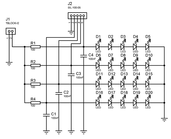 A lot can also be written on how to power the LEDs but, here, I went for a very straightforward 4 strings of 5 LEDs with passive resistors in front of each string as shown in Figure 3. It is probably the worst way to power a LED panel but, again, it is good enough for a prototype and I am by no means a professional electronic engineer (despite I enjoy building circuits as you have seen on this blog). A laboratory power supply with an adjustable voltage source provides the energy and the passive resistors provides a current limitation for the LED more on that below.