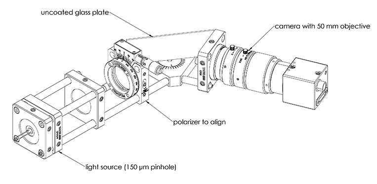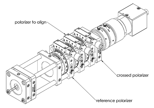 Now that we have a reference axis defined for our polarizer, we can ask ourselves how to align a second polarizer to a crossed configuration relative to this reference polarizer. Here, we can use the setup of Figure 3 using a similar procedure with the grayscale histogram on the camera.