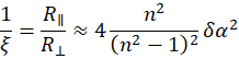 where δα is the incidence angle error relative to the Brewster angle and n is the refractive index of the glass.
