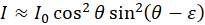 Also, the formula cos²(θ)×sin²(θ) applies to a system with perfectly aligned crossed polarizer. When the crossed polarizer has a small angular error ε the equation becomes